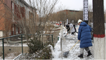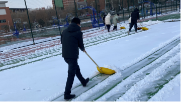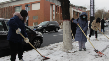 扫雪过程中,同学们积极参与、相互配合,手拿铁锹和扫帚在分配场地清理积雪。虽然天冷雪厚,增加了除雪难度,但同学们并没有因此退缩,在完成自己班级任务的同时,还帮助邻近的班级扫雪。经过一个多小时的奋战,主干道的积雪得到了清除,为师生的出行带来了方便。