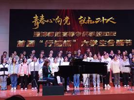 在接到歌咏比赛通知后,我系高度重视,认真谋划,刻苦训练。在音乐系同学的精心指导下,参赛同学共同努力,赛前也通过开嗓热身将大家饱满的情绪调动起来,比赛队伍的演唱水平得到了大幅提高,雄浑激昂、高亢嘹亮,次次将歌曲唱响,只为能在演出时给观众带来一场难忘的视听盛宴。