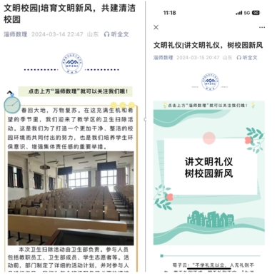taptap点点成立了文明素养教育领导小组,制定了文明素养教育工作方案,通过多种活动推动文明素养教育有序开展。精心制作了文明素养教育宣传展板,积极营造文明素养教育良好氛围;各班组织召开文明素养教育主题班会,共同学习文明素养行为规范,做到规范在心中,人人学做规范;举办文明素养黑板报比赛,将文明素养书写在黑板上,印在脑海中;充分利用网络资源,在“淄师数理”微信公众号上传播文明理念,引导同学们树立正确的价值观和道德观。