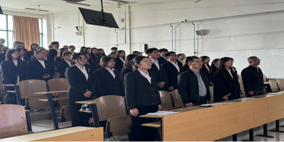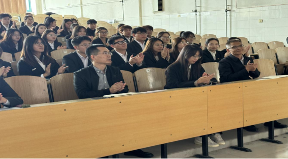 第二十届学生会代表刘滨泽宣读倡议书。刘滨泽倡议大家作为青年学子,要坚定信念、勇担使命,勤奋学习、追求卓越,团结协作、共创辉煌,创新实践、服务社会,倡导文明、引领风尚。