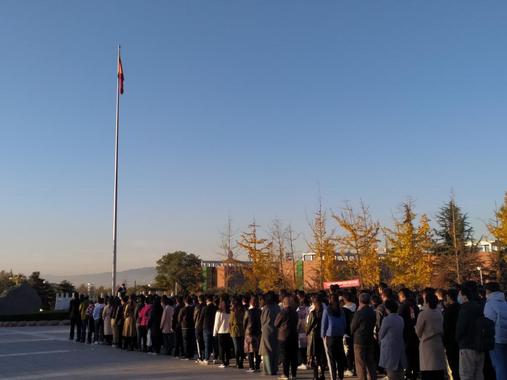 为加强爱国主义教育,提升青年学生的历史使命感,11月9日清晨,我系全体师生在杏坛广场举行了庄严的升旗仪式。在全体师生的注目礼下,英姿飒爽的国旗护卫队队员们迈着整齐的步伐,庄严走向升旗台,伴随着激昂的《义勇军进行曲》,升旗手振臂一挥,鲜艳的五星红旗迎风招展,冉冉升起。