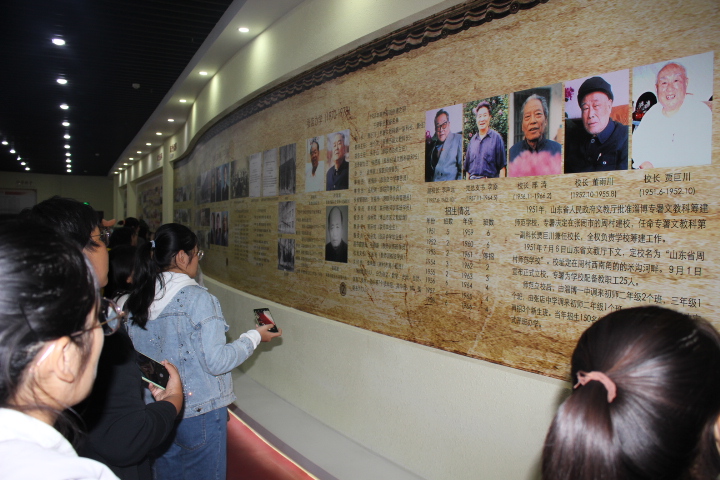 踏入校史馆,同学们沿着狭长的历史长廊,深入地了解了淄博师专悠久的历史文化,感受一路走来师专的精彩与无限魅力。大家时而聚集在老师身边聆听讲解,时而分散开仔细了解自己感兴趣的史料。丰富的史料再现,让大家真切地感受到了我校这些年来走过的荣耀与辉煌,以及为国家作出的卓越贡献。在为其赞叹的同时,同学们纷纷表示,能在淄师学习是一种荣幸,也是人生中一次难得的经历,今后一定会好好学习掌握科学文化知识,提高文化素养,为日后发展打下了坚实的基础。