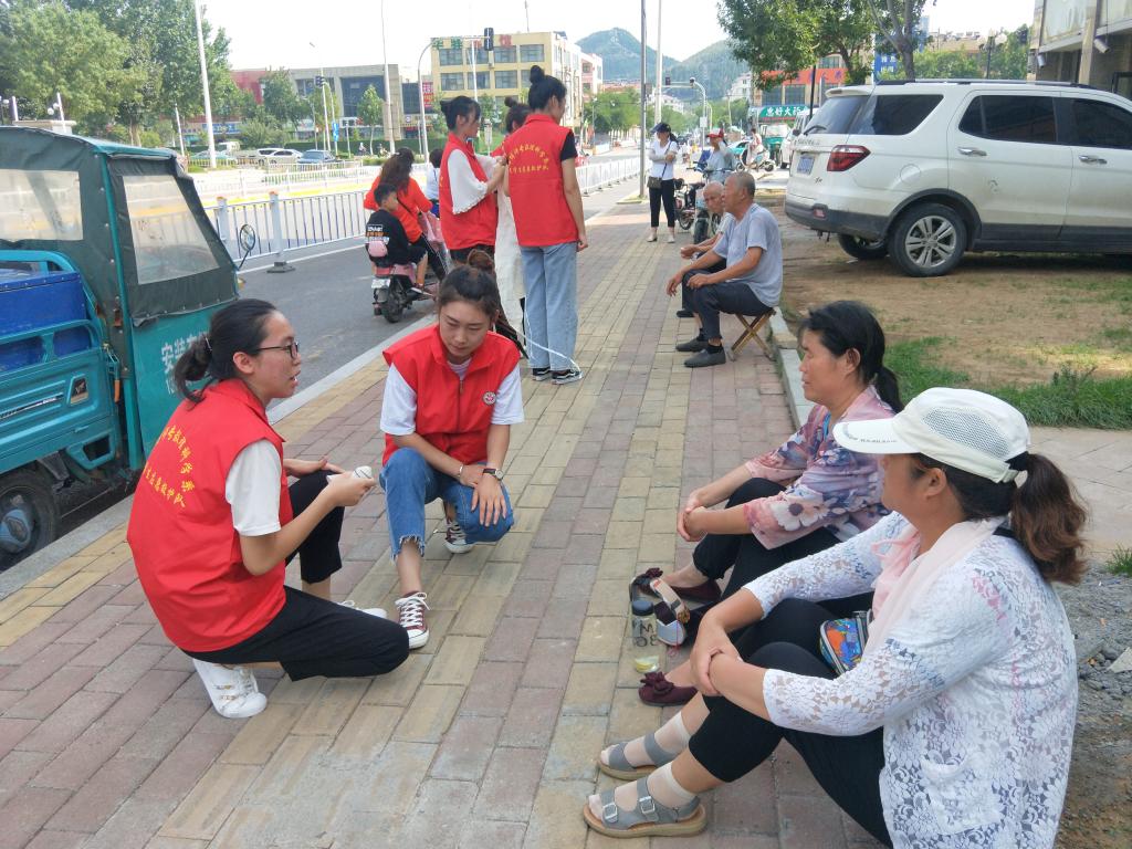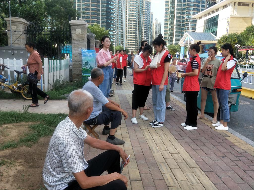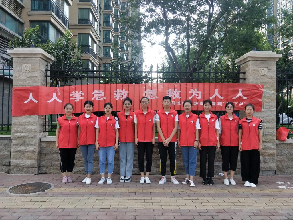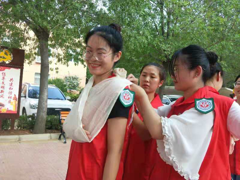 7月28日下午,我系暑期三下乡“红十字志愿服务队”走进济南市长清区恒大绿洲社区和乐天小区,开展以“人人学急救急救为人人”为主题的红十字应急救护包扎志愿宣讲活动。
