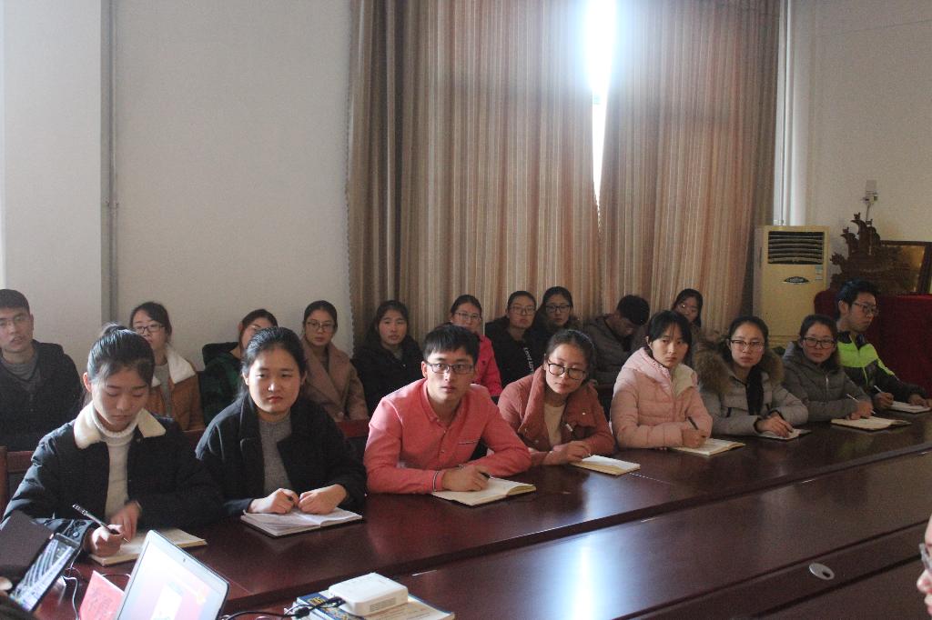 12月5日下午,团市委副书记李厚永在数理科学系会议室为数学教育专业2016级5班团支部的团员青年上党的十九大精神主题团课,校团委书记刘晓莉、数理科学系师生共计50余人参加。