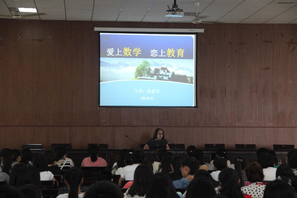 为了让2015级新生了解就读专业、系的实际情况,更加喜欢数学、热爱数学,9月9日下午,我系段素芬老师在学校报告厅为2015级新生做了“爱上数学 恋上教育”专题讲座。