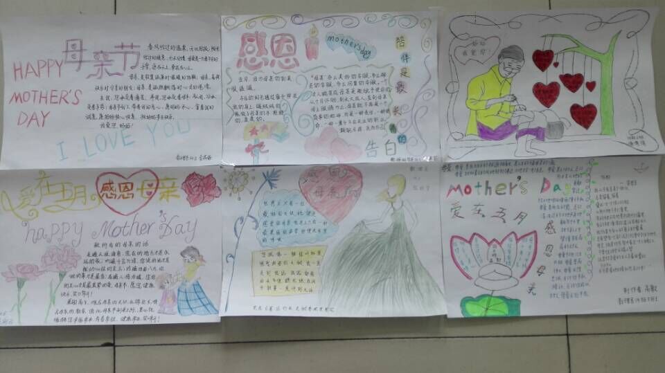 高尔基说过“世界上的一切光荣和骄傲,都来自母亲。”同学们为了对母亲表达感激之情,积极参加此次活动,精心设计了各种新颖的手抄报,通过精美的图画与文字表达对母亲的爱与感谢。此次活动共收集作品六十份,筛选出二十份优秀作品,于5月10日母亲节当天进行了展览。
