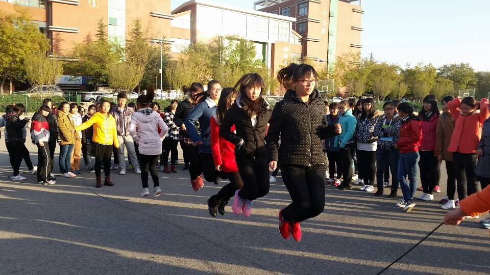 当比赛的哨声响起,两位甩绳运动员便齐力甩动手中的大绳同时绳中的运动员一起跳起。此时此刻的运动场上,只见绳影闪闪,擦过地面,上下翻飞像金蛇狂舞,发出“呼呼”的响声,让人看得眼花缭乱,围观的同学也受到了他们的感染,激动着,兴奋着,愉快的时光总是那么短暂,活动最后三班获得一等奖,六班获得二等奖,一班获得三等奖。