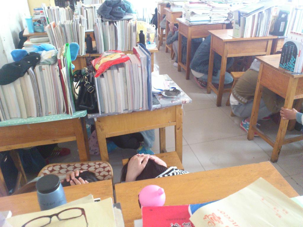 在掌握了安全理论知识基础上开展了模拟地震逃生演练安全活动。本次演练活动组织严密,师生动作迅速,疏散有序。按照逃生路线迅速撤离教学楼,各班有序站好,清点人数,疏散中无一学生遗留教室,无一人受伤,到达安全地区(篮球场)总共用时3分20秒,达得了预期的效果。