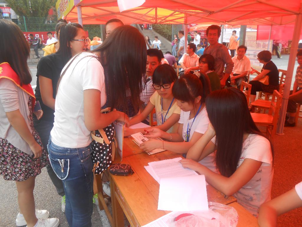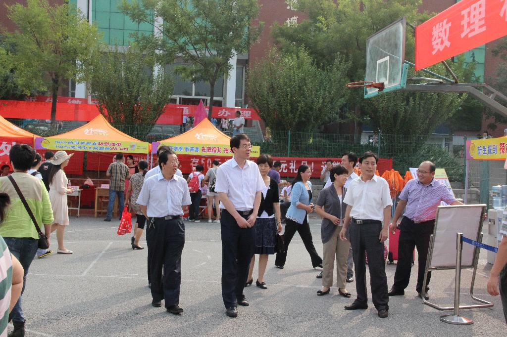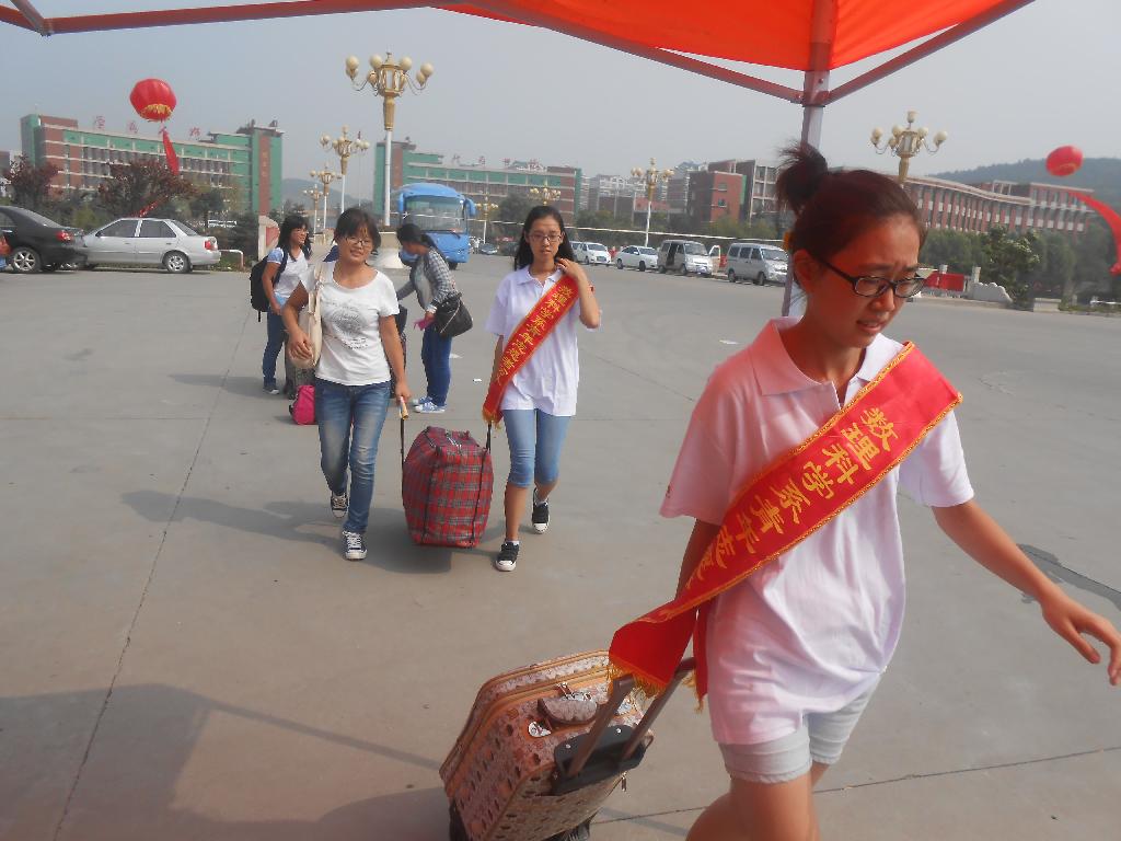 早晨7:00,参与接待工作的师生到达了篮球场迎新地点,接待工作准备就绪,各项工作井然有序,迎新工作正式启动。新生们在志愿者的带领下,进行了注册、移交档案、领取饭卡及住宿等入学手续,为新生入学报到提供热情服务。学校领导来到新生报到处与工作人员及志愿者们进行交流,详细了解了迎新工作进展情况,同时慰问了新生及家长。本次新生接待工作创新报到形式,特别设置了新生报到一米线,提倡新生独立报到,提高了报到效率,同时也增强了新生的独立自主能力。
