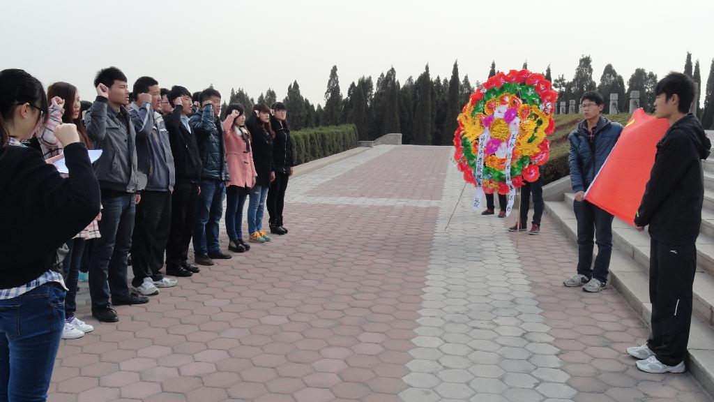 在烈士陵园,全体成员带着沉重肃穆的心情,在革命烈士纪念碑前进行了鞠躬、默哀、学生代表发言等纪念活动。面对英雄纪念碑,每位同学都高举右臂,重温了入党誓词,洪亮而坚定的声音里充满着对责任和使命的深深体会,充满着为共产主义奋斗终身的决心。同学们在庄严的纪念碑前献上花圈,用寄托着无限哀思的鲜花向革命烈士致敬,表达出最深切的缅怀之情。大家走进革命烈士纪念馆,对烈士可歌可泣的英雄事迹进行了详细的了解。