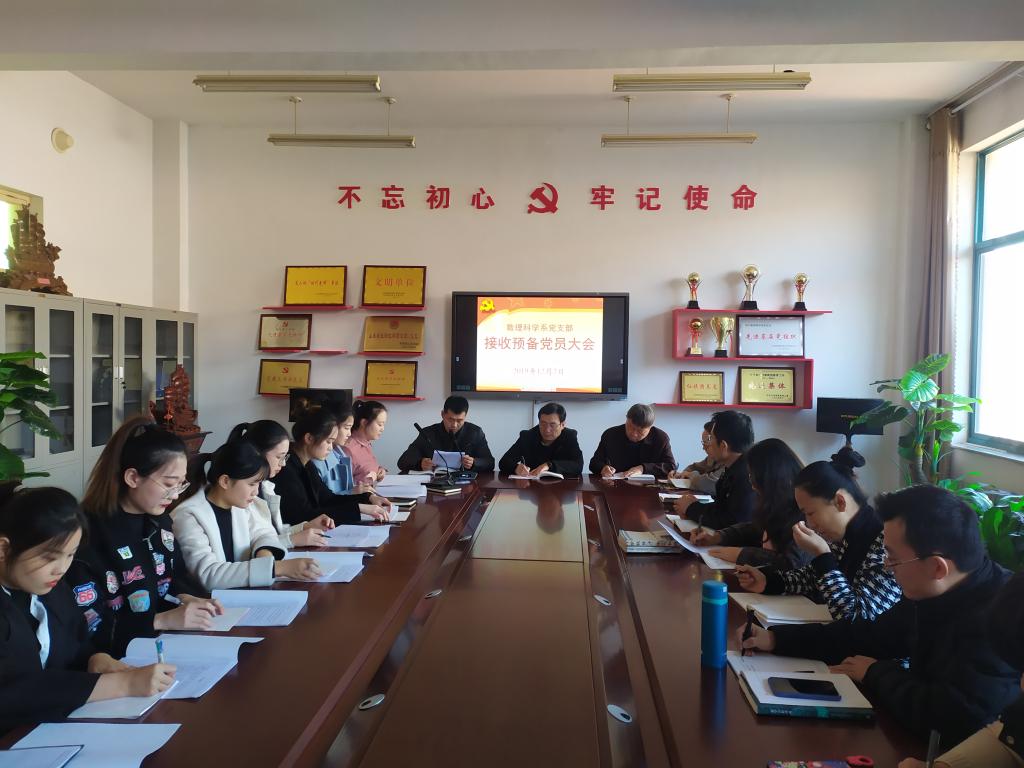12月2日下午,系党支部在党员活动室召开了2019年接收预备党员大会,讨论表决13名发展对象的组织发展。系党支部全体党员、发展对象、入党积极分子代表参加了会议。
