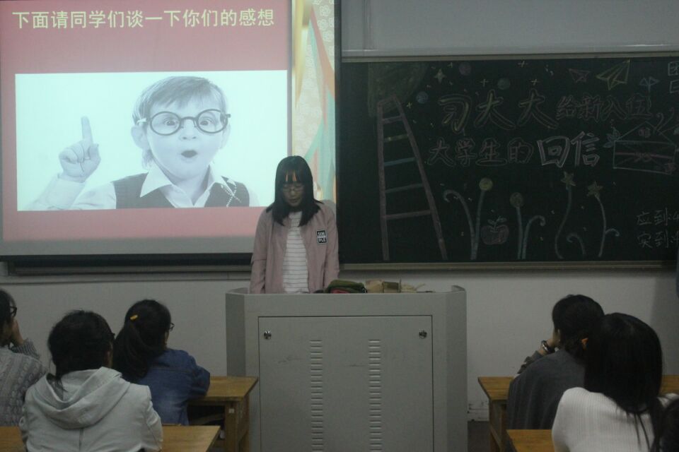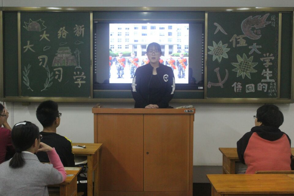 各班团支部书记向同学们传达了《中共教育部党组关于学习贯彻习近平总书记给南开大学新入伍大学生重要回信精神的通知》,带领同学们学习了习近平总书记给南开大学新入伍大学生的回信内容,大家从中体会到了习近平总书记的殷切关怀与期待。我系退役复学的大学生士兵苗盛春回忆了自己携笔从戎的军旅经历,在两年紧张充实的部队生活中,他和身边战友心存报国志,胸怀强军梦,秉承了爱国奉献的优良传统,锤炼了坚忍不拔的钢铁意志,这些都成为他人生旅途中最宝贵的财富;有的同学认为,这是习近平总书记对我们大学生的激励与期盼,作为师范生,要认真学习专业课知识,心怀报国之情,为祖国的发展奉献自己的一份力量,成为真正有知识有素质有能力的人民教师;有的同学认为,习近平总书记的一番话让我们对自己的价值充满信心,心怀国家,心怀人民,处处为他人着想,认真做好自己该做的事,实现自己的价值;有的同学认为,作为当代大学生,要以习近平总书记回信精神为激励,坚定为国家发展作贡献的决心,为“中国梦、强军梦”添砖加瓦,在学习和实践中做出新的成绩;有的同学认为,习近平总书记激励我们为国家国防事业做出贡献,我们应该做到德智体美劳全面发展,成为适应社会发展需要的高素质人才。