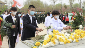 同学们满怀敬意地将一朵朵鲜花放于墓前,向英雄表达无尽的哀悼和哀思。