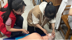 本次活动的重点内容包括心肺复苏和包扎等急救技能的演示和实践。在讲解心肺复苏技术时,大学生红十字应急救护队队员们向同学们展示了正确的位置、手法和频率,并特别强调了在心肺复苏中的时间和速度是至关重要的。