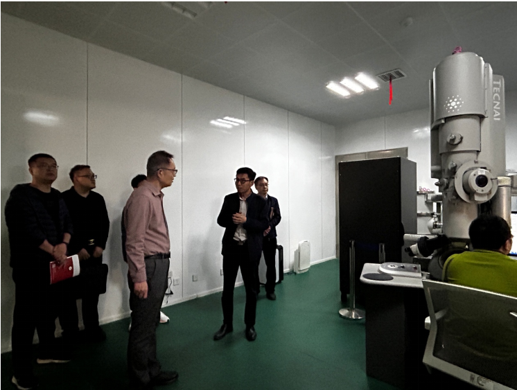 山东理工大学物理与光电工程学院院长孙玉萍、副院长尹广超分别介绍了学院的总体情况和集成电路专业的办学情况,双方围绕微电子技术专业建设、实践教学体系构建、科研与教学融合等议题展开深入探讨,并参观了基础电子实验室、光电材料与器件实验室等科研基地,详细了解实验设备配置、课程体系及科研创新成果。随后,团队前往山东理工大学分析测试中心,在中心主任张明伟的指导下,观摩了材料表征、微纳加工等先进测试平台,学习高精密仪器的管理及教学应用经验。