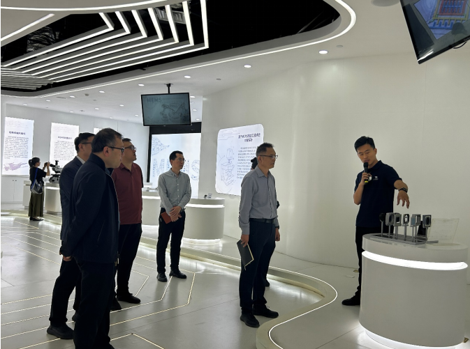 在中心展厅,调研组通过专业讲解系统了解了MEMS、光电子等智能制造领域的最新技术发展和产业应用情况。