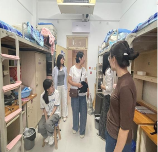 下午4:00,系领导带领全体辅导员老师深入学生公寓走访。他们细致查看住宿环境,关切询问新生适应情况,耐心解答新生们的疑虑,将亲切关怀落到生活的细微之处。