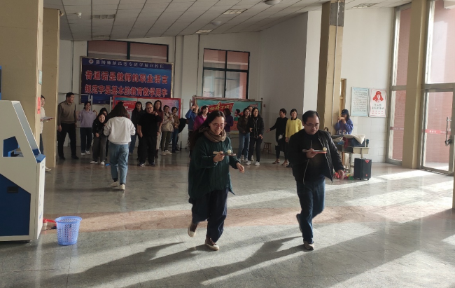 本次活动主要有1分钟跳绳、1分钟踢毽子、20米托球往返跑、乒乓球掷准四个项目。老师们精神抖擞,神采飞扬,齐心协力,各显身手。在紧张而又富有趣味的活动中,大家相互切磋,共同提高进步,不仅体验到健身的乐趣,展示了自身风采,而且彼此增进了友谊,加强了团队协作意识。丰富多彩的活动项目环节高潮迭起、笑声不断。